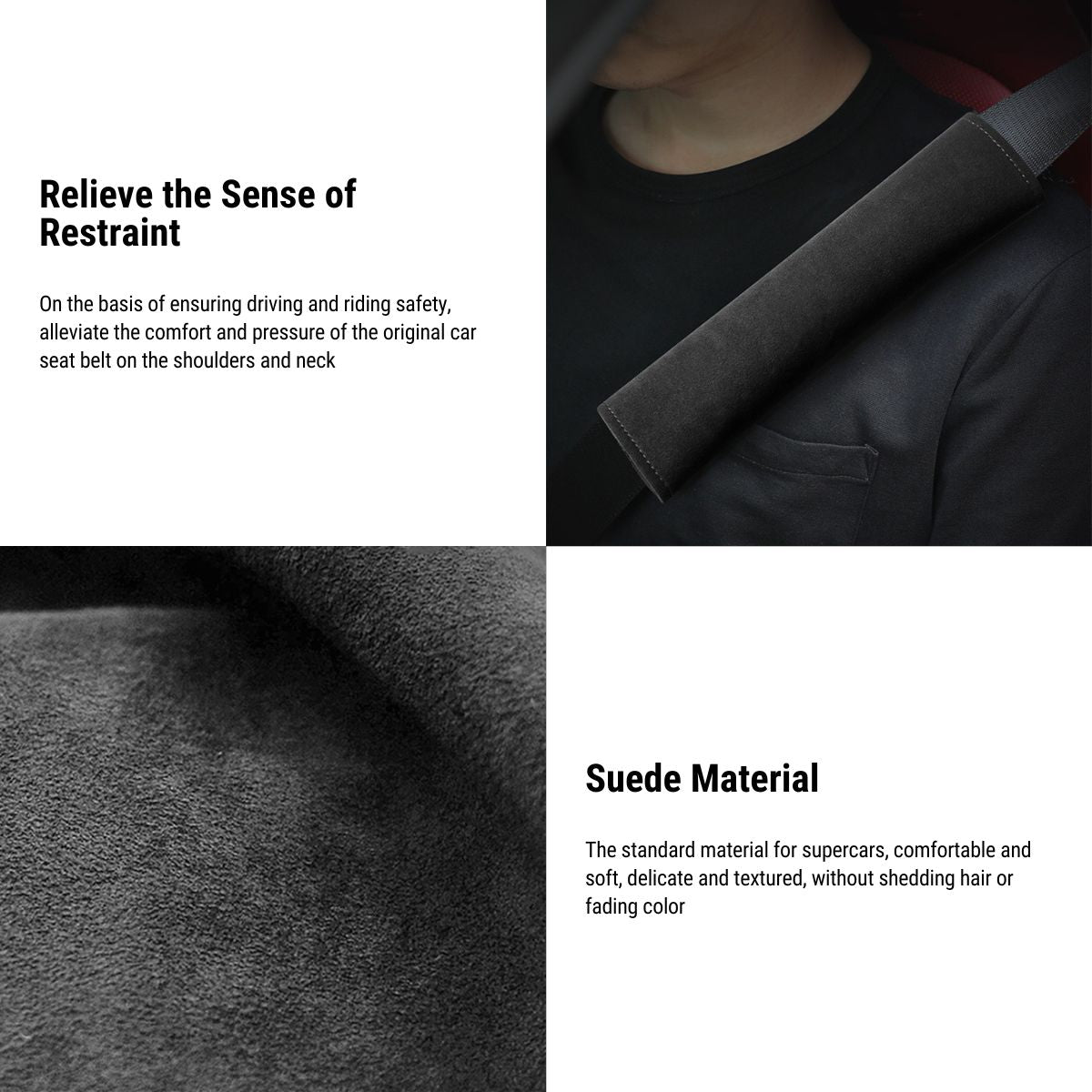 - 【High-Grade Alcantara】Made of high-quality Alcantara material, the Tesla Seat Belt Cover is breathable and not stuffy, comfortable to the touch, will not irritate the skin, and will not fade.