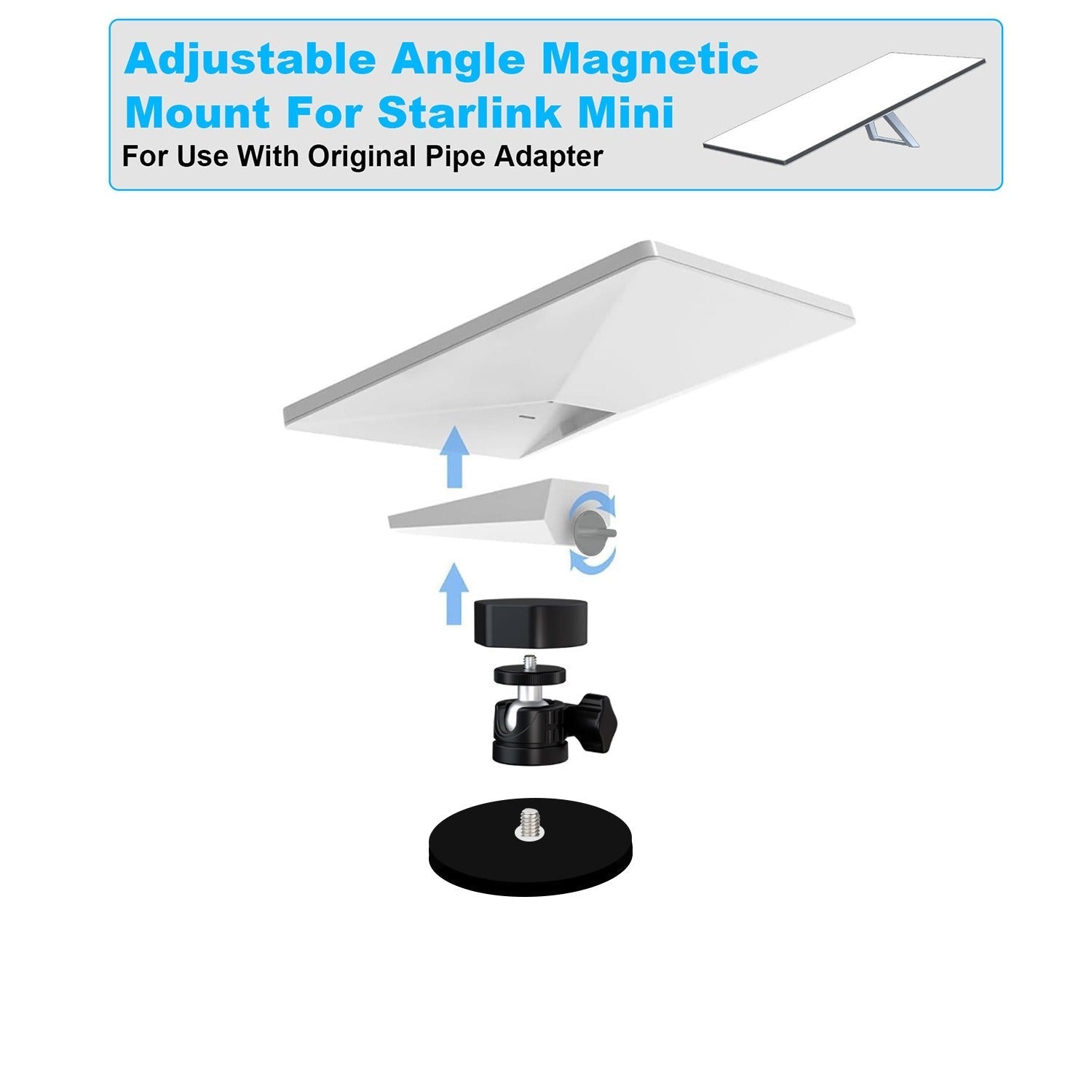 The magnetic bracket offers versatile attachment options, firmly securing your Starlink Mini on iron roofs, flat iron surfaces, or car roofs without any drilling. (Please note: Not suitable for aluminum surfaces).