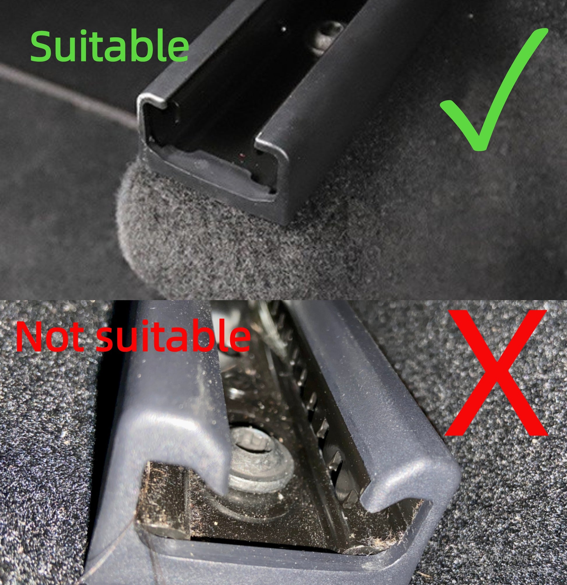 Directly clip them on the rear seat slide rail, and secure them with double-sided tape(included). After sticking, it is stable and not easy to fall off.
