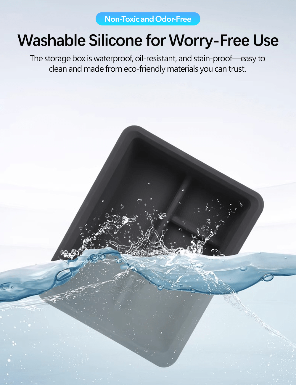 - 【Eco-Friendly and Easy to Clean】:Made from eco-friendly silicone, our storage box is not only waterproof but also resistant to oil and stains. It's easy to wash and maintain, ensuring a clean and healthy environment for your belongings on the go.