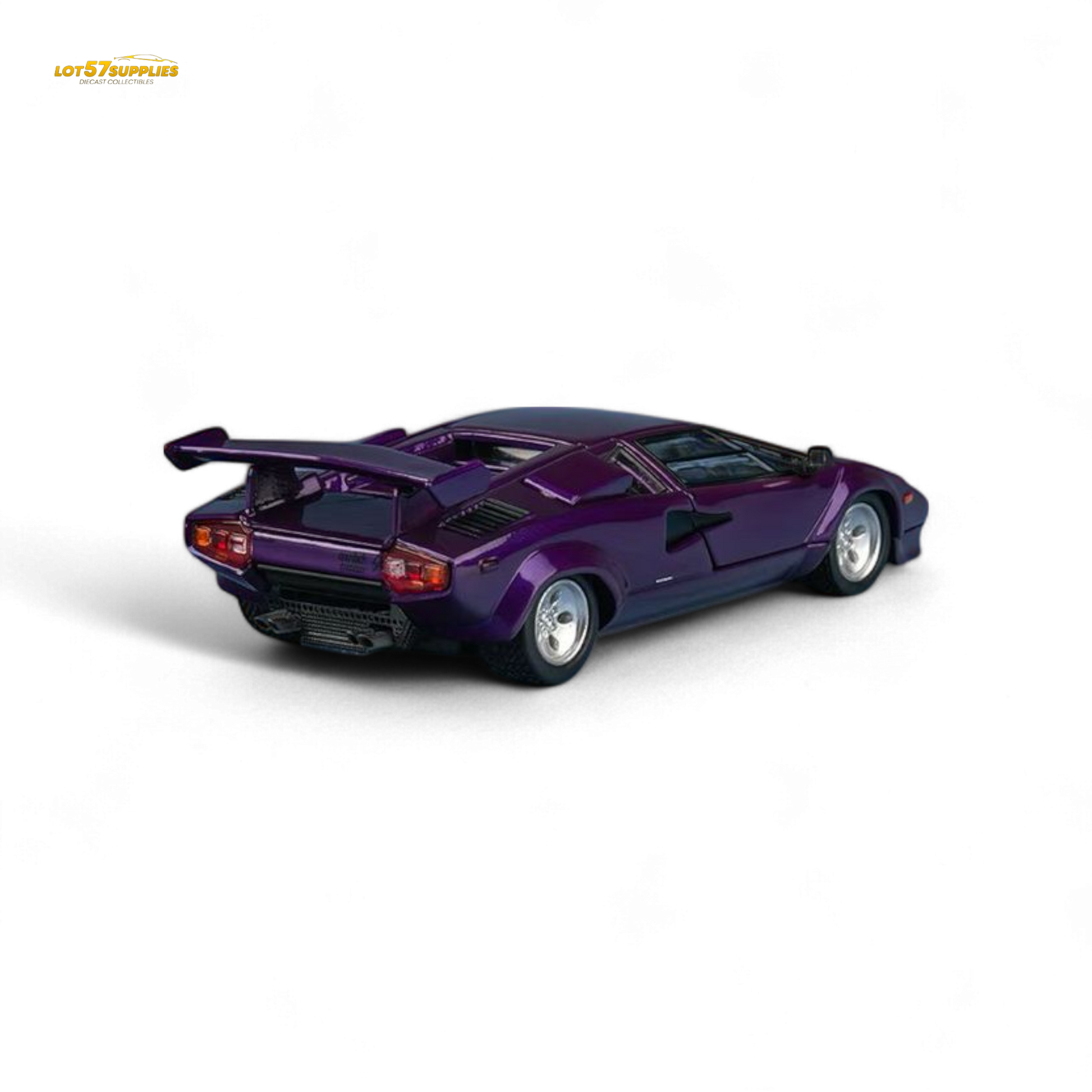 Findclassically delivers the Countach LP5000S in a striking Metallic Purple with Wing at 1:64 scale. This diecast collectible blends bold design and authentic detail, perfect for fans of iconic cars.