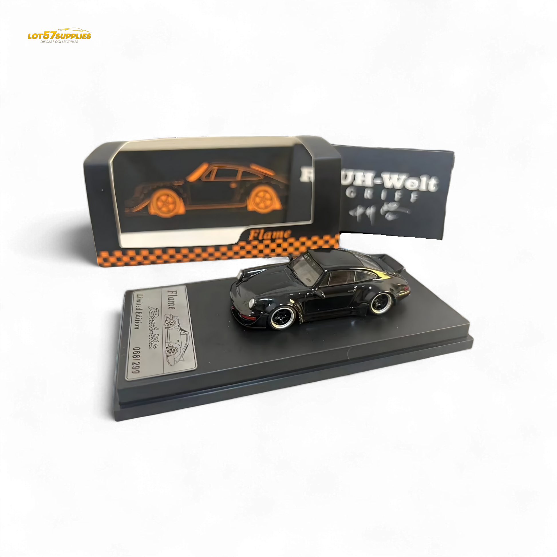 Flame Porsche 964 RWB Ducktail in Gloss Black 1:64