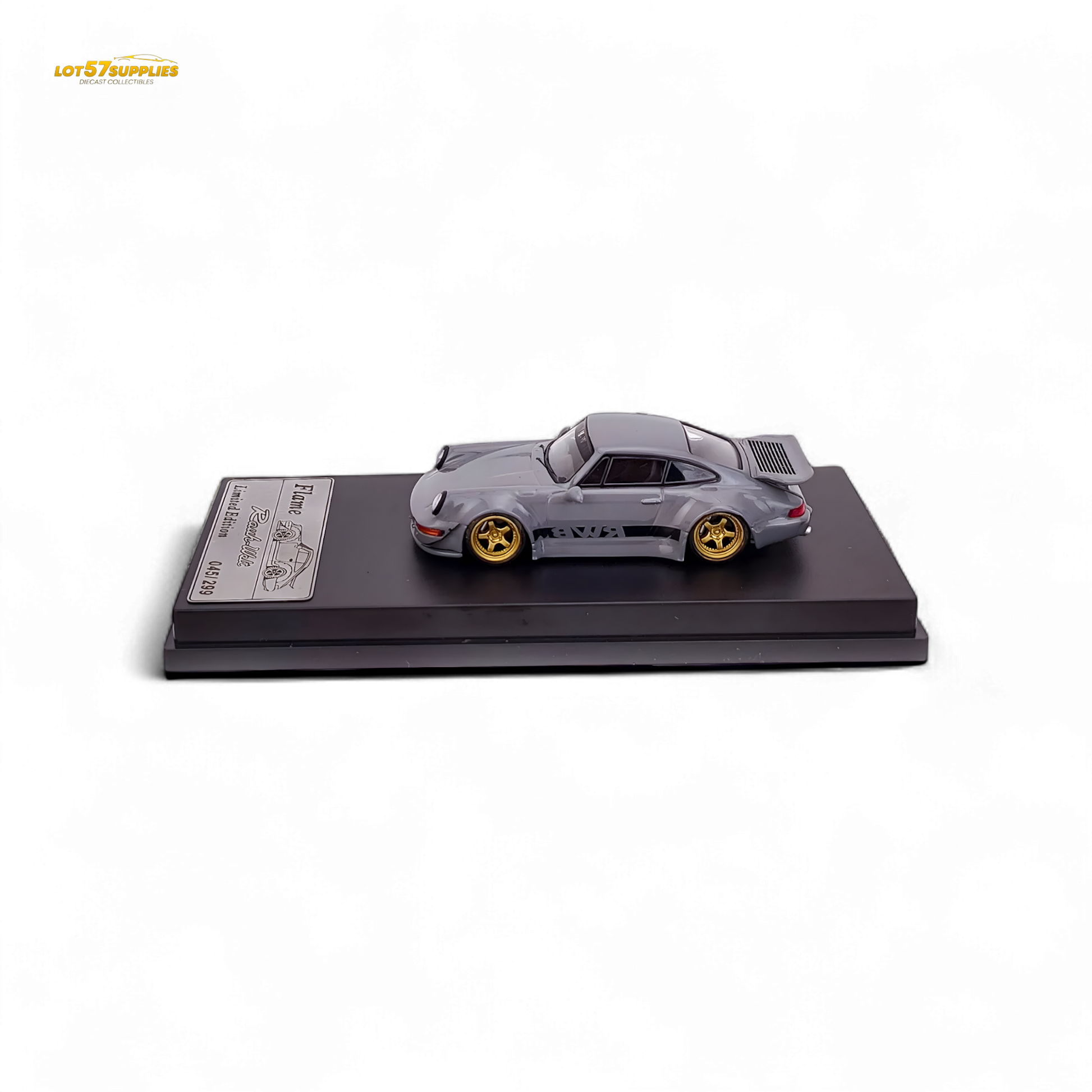 Flame Porsche 964 RWB Whale Tale in Cement Gray 1:64