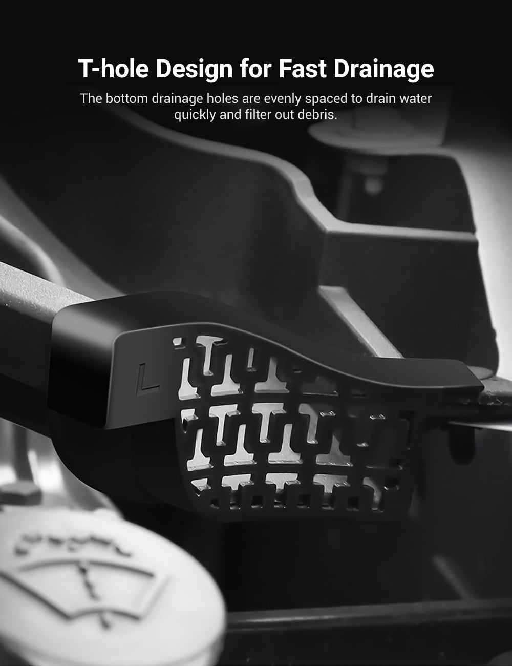 - 【Anti-clogging】High-density mesh design can effectively prevent small objects from falling in, preventing the front trunk/torso drainage channel from being blocked, resulting in expensive maintenance costs; at the same time, it will not affect the ventilation effect of the original drainage pipe.