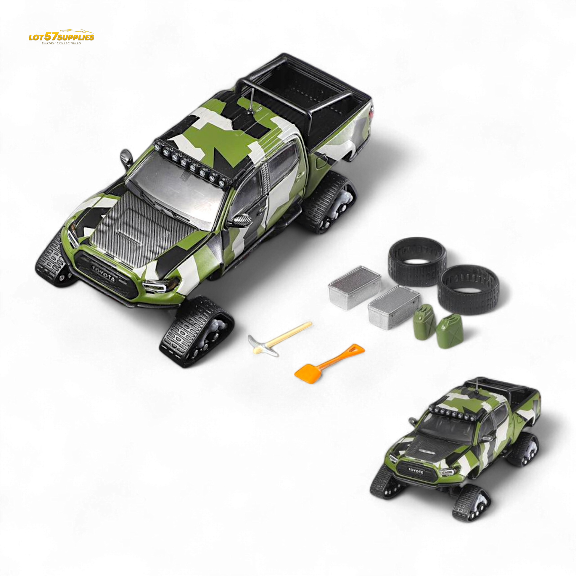 GCD Toyota TACOMA SNOW VERSION in Green Camo & 3PMSF Tires 1:64