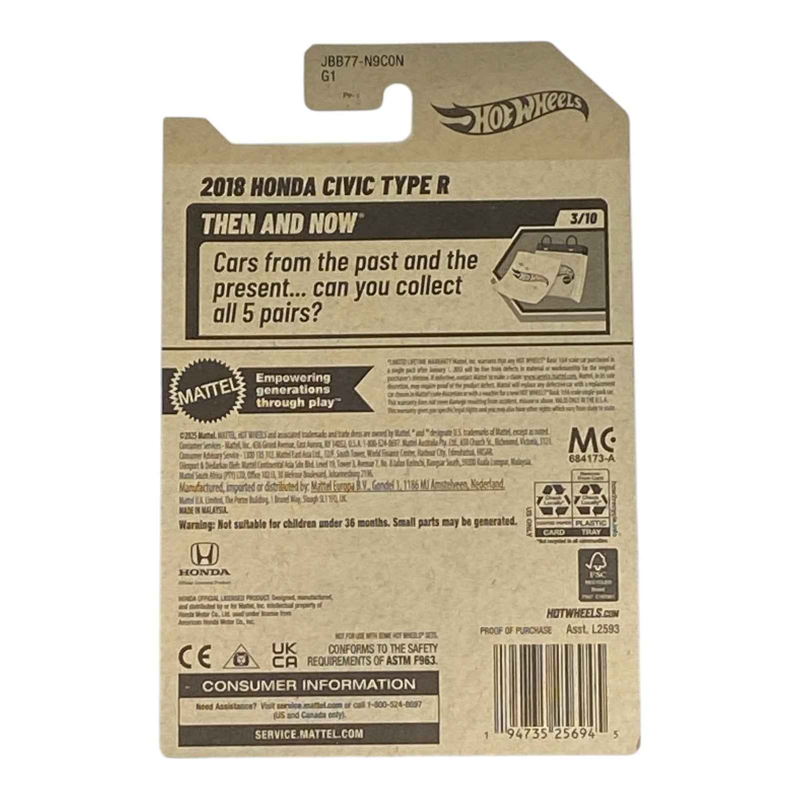 Hot Wheels 2018 Honda Civic Type R - Then and Now Series 3/10