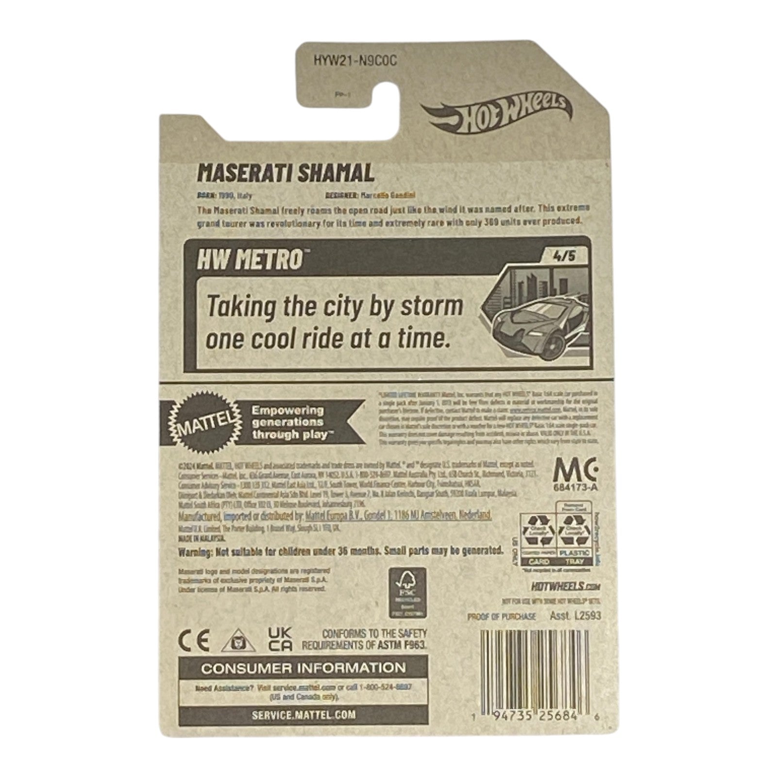 The Hot Wheels Maserati Shamal is a stunning addition to any car enthusiast's collection. As part of the HW Metro Series 4/5, this incredibly detailed model captures the essence of the original Maserati Shamal, making it a must-have for fans around the world.