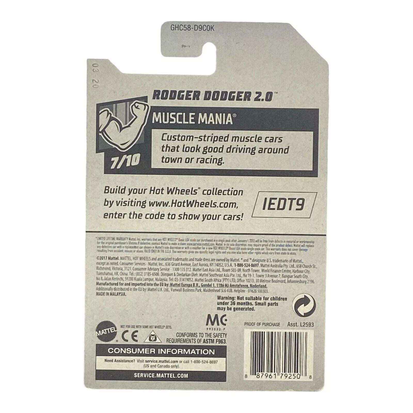 Whether you're adding it to an existing collection or starting fresh, the Hot Wheels Rodger Dodger 2.0 is a perfect choice for anyone who appreciates quality, performance, and timeless design. Collectors will especially value the position of this model in the Muscle Mania lineup, making it a significant find. Don't miss out on your chance to own this remarkable piece of Hot Wheels heritage.