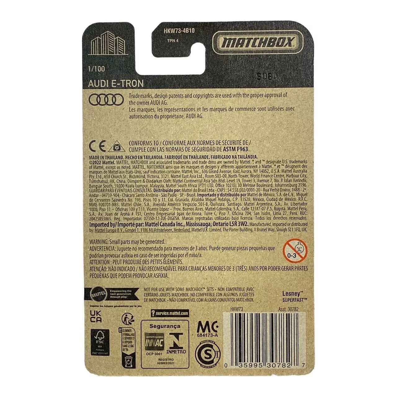 The design of the Matchbox Audi E-Tron reflects the cutting-edge features of the actual vehicle, including aspects like a streamlined body, intricate wheel designs, and vibrant color options. Each model undergoes rigorous quality checks to ensure it meets the high standards Matchbox is known for.