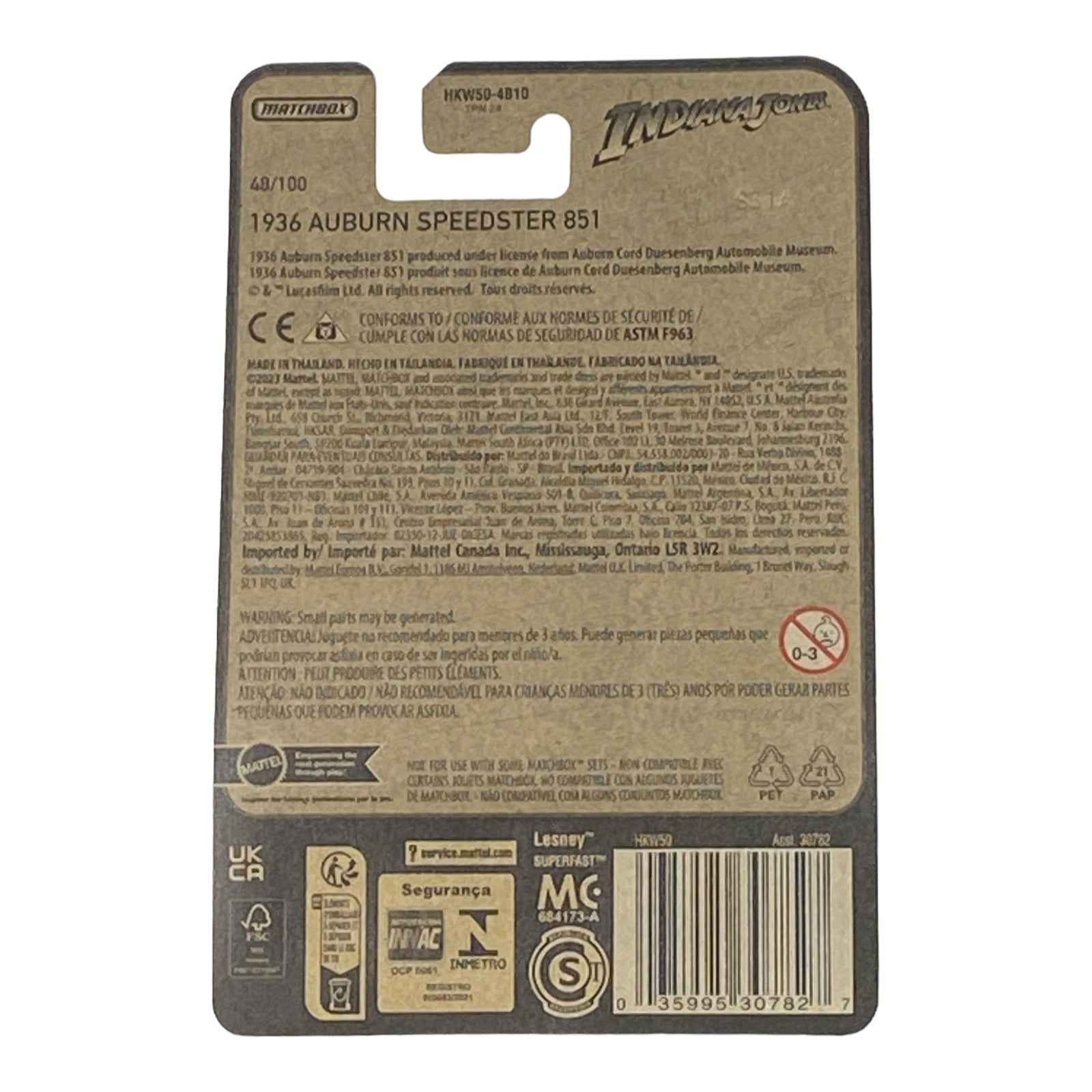 The Matchbox Indiana Jones 1936 Auburn Speedster 851 is a striking collector’s item that pays homage to an iconic vehicle from the adventurous world of Indiana Jones. This meticulously crafted model car celebrates the style and elegance of the 1936 Auburn Speedster, known for its unique art deco design and remarkable performance. It’s not just a toy; it’s a piece of cinematic history that is perfect for enthusiasts and collectors alike. As part of the 70 Years Series, this special edition model captures the essence of action, adventure, and timeless automotive artistry.