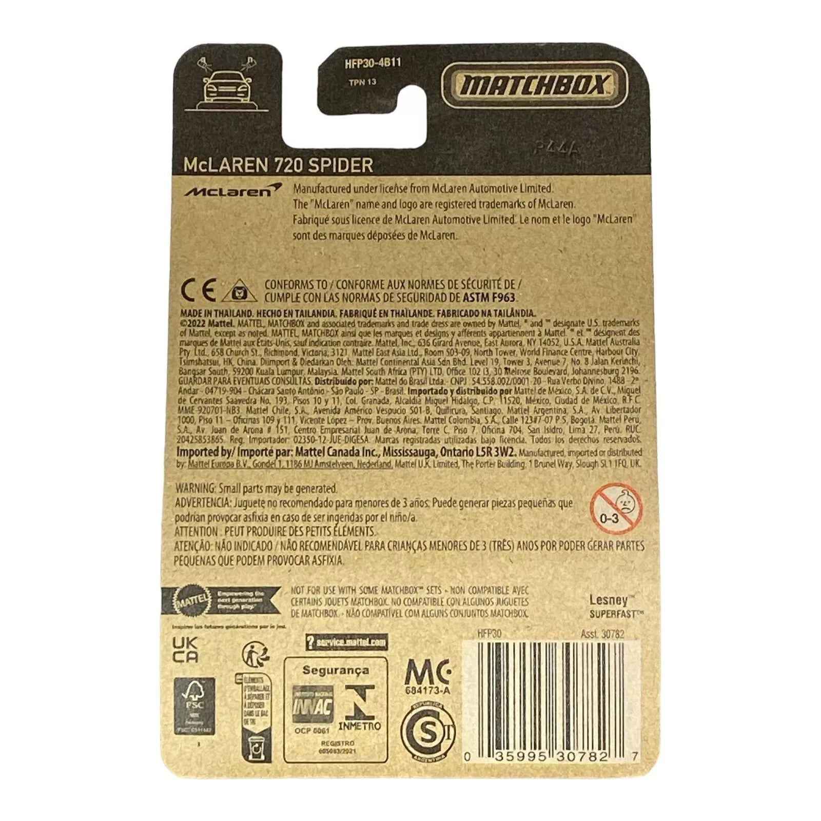 - Authentic Design: Every detail of the Matchbox McLaren 720 Spider is crafted to reflect the original car, offering a lifelike experience.