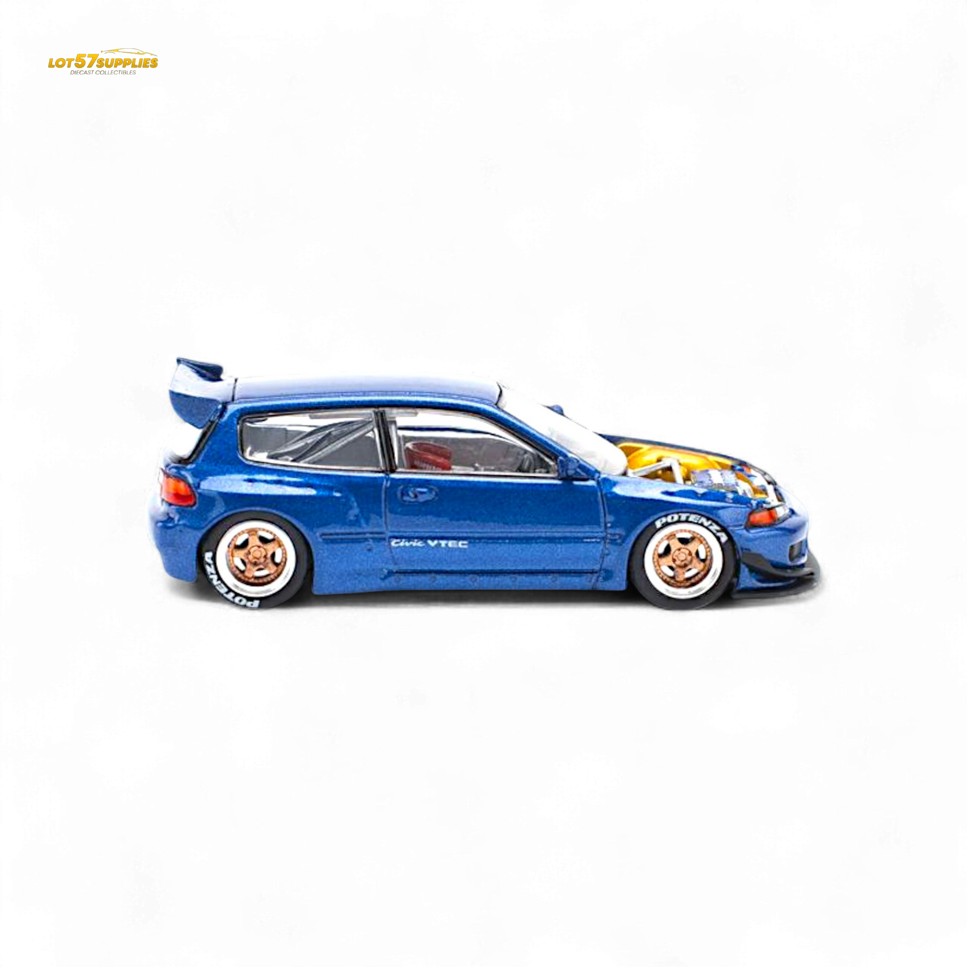 Pop Race Pandem Civic EG6 Metallic Blue w/ Openable hood 1:64