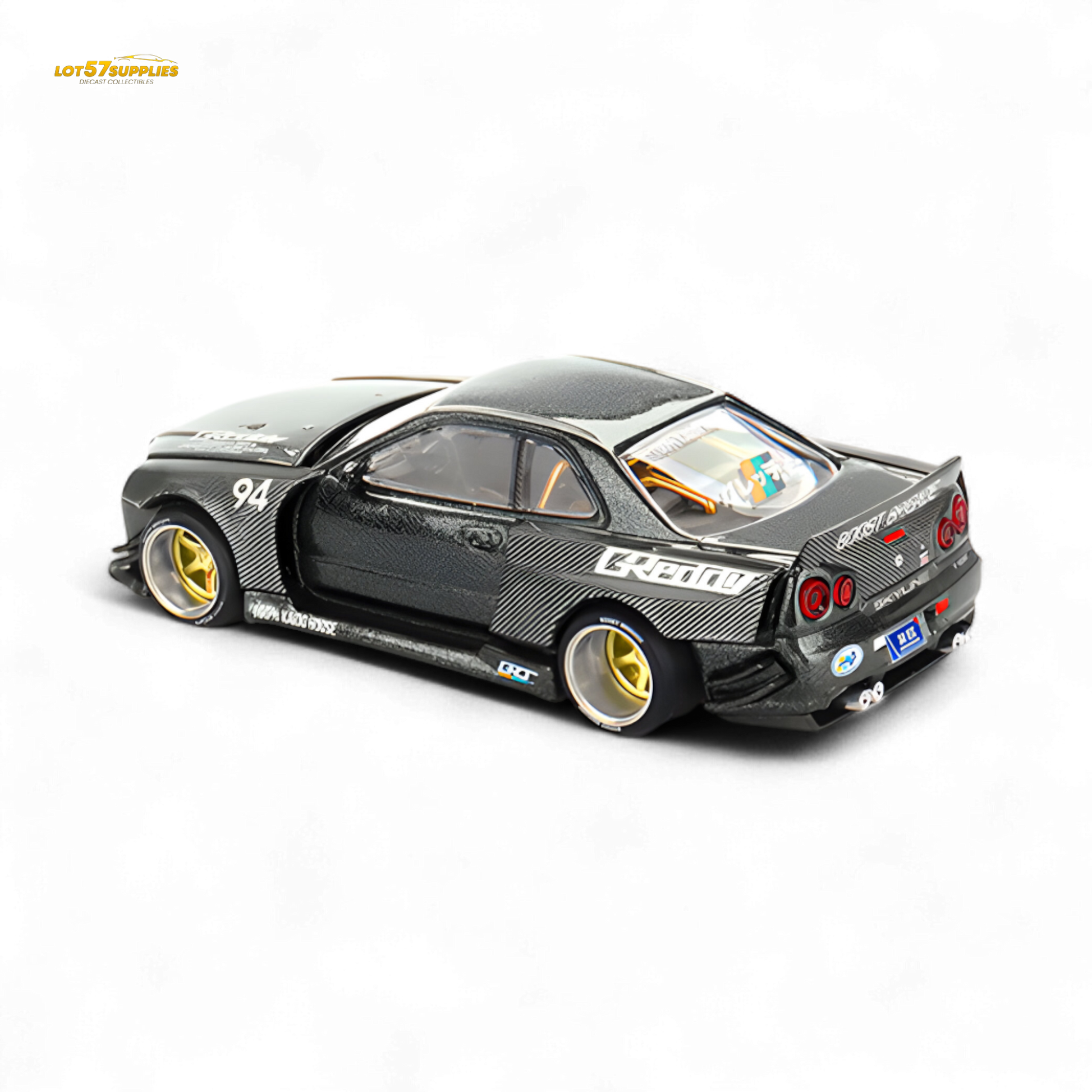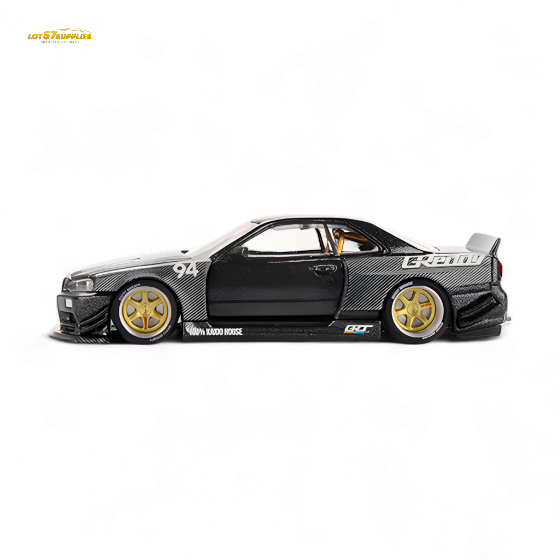 (Pre-Order) Kaido House x Mini GT Nissan Skyline GT-R (R34) Kaido Works GReddy V2 - Black w/ Carbon 1:64
