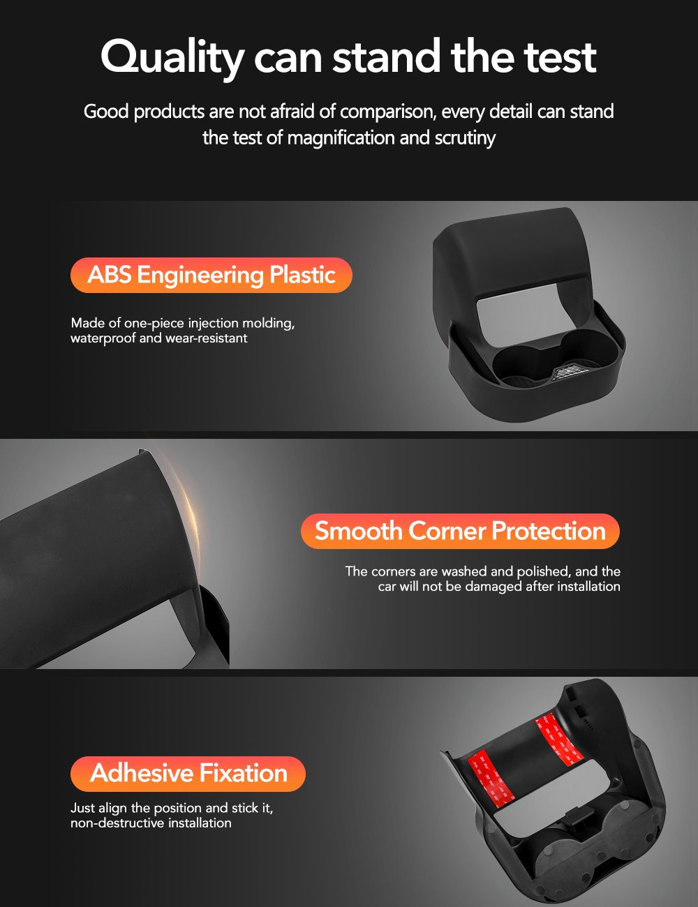 Premium Quality: Crafted from high-quality materials, our Model Y cup holder is built for durability. It can withstand daily wear and tear, ensuring it remains a reliable accessory in your Tesla.
