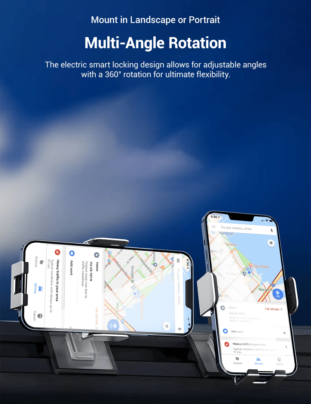 【Free Rotation and Ideal Viewing Angle】The 360° rotating and pivoting ball joint can be adjusted to any viewing angle, allowing you to quickly switch between vertical and horizontal visual angles while keeping your device safely in place while driving. (Please pay attention to road safety while driving.)