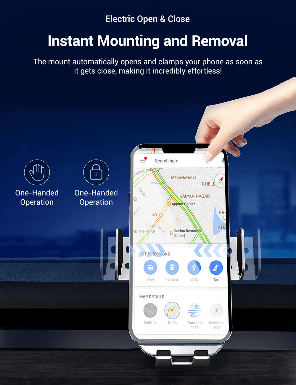 【Solar auto-clamping】The Tesla phone mount uses solar energy to operate. A gentle press of the button on the left side of the mount opens the arms, which automatically clamp when a phone is placed in the mount. This Tesla phone mount can automatically store solar energy when exposed to sunlight, promoting environmentally-friendly practices in conjunction with Tesla's new energy initiatives.