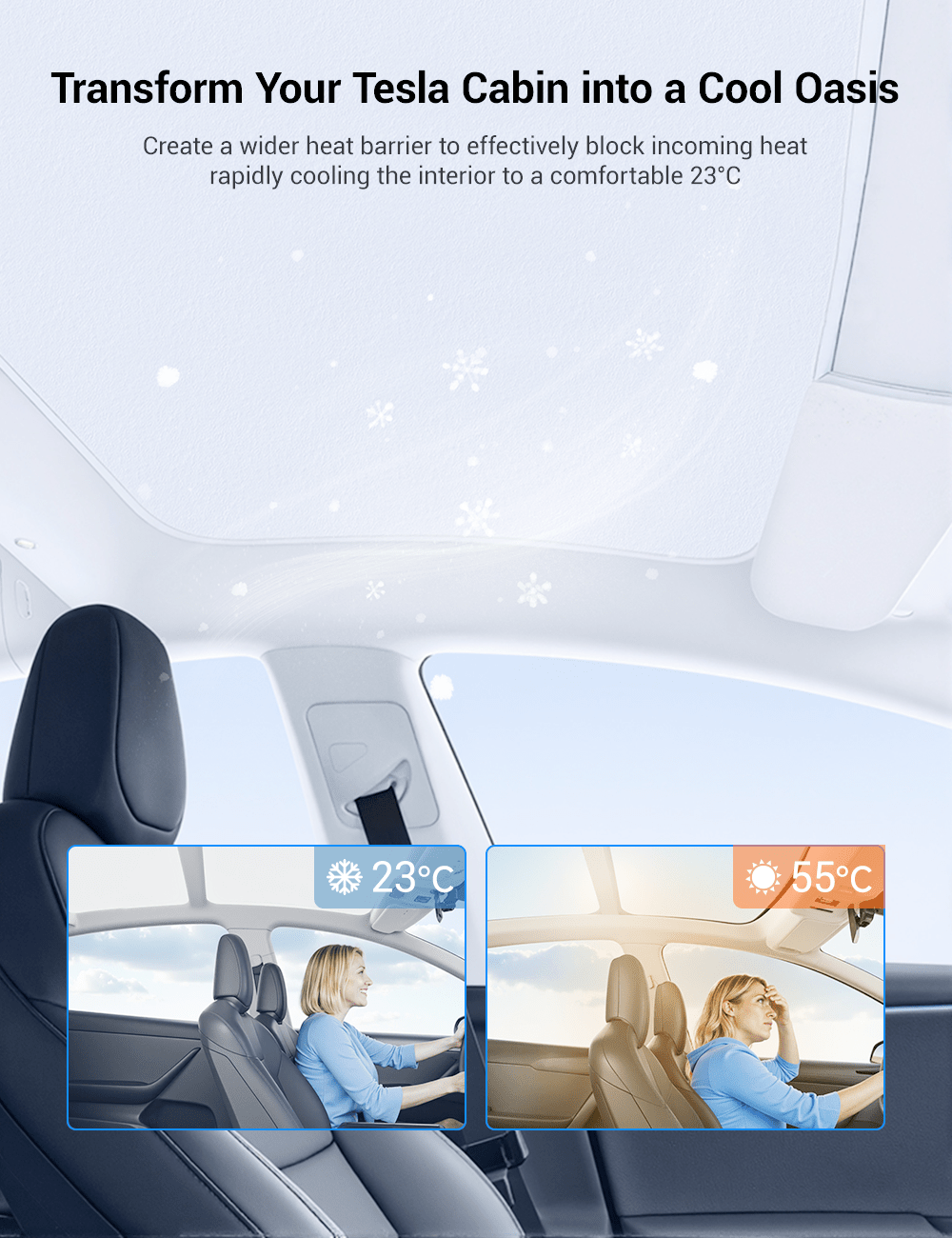 Is your Tesla Model 3 feeling like a sauna in the summer heat? 🔥 The sun can quickly turn your car into an oven, accelerating interior aging and compromising comfort. Our Graphene Roof Shade for Model 3 is designed to block harsh sun and UV rays, keeping your interior cool and protected for a more comfortable ride!❄️
