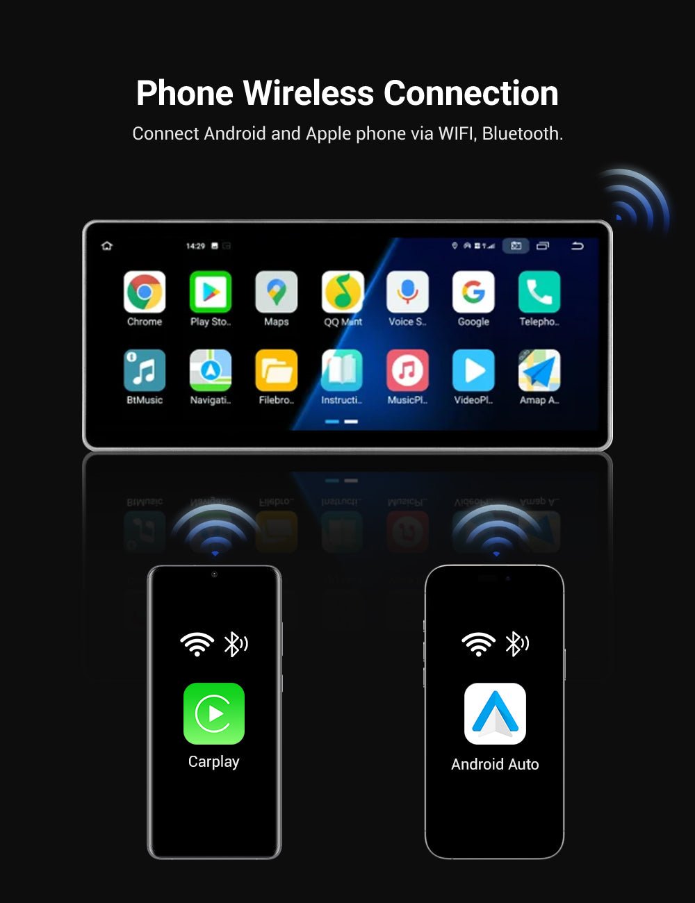 - Supports Apple wireless CarPlay and wired/wireless Android Auto