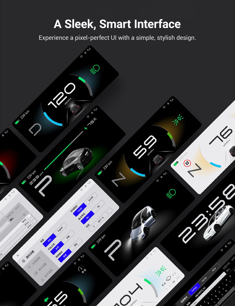 A1 - No. Dashboard display for Model 3 Highland are compact (around 7") and sit low behind the wheel, putting core info in your natural line of sight without blocking vents or forward view.