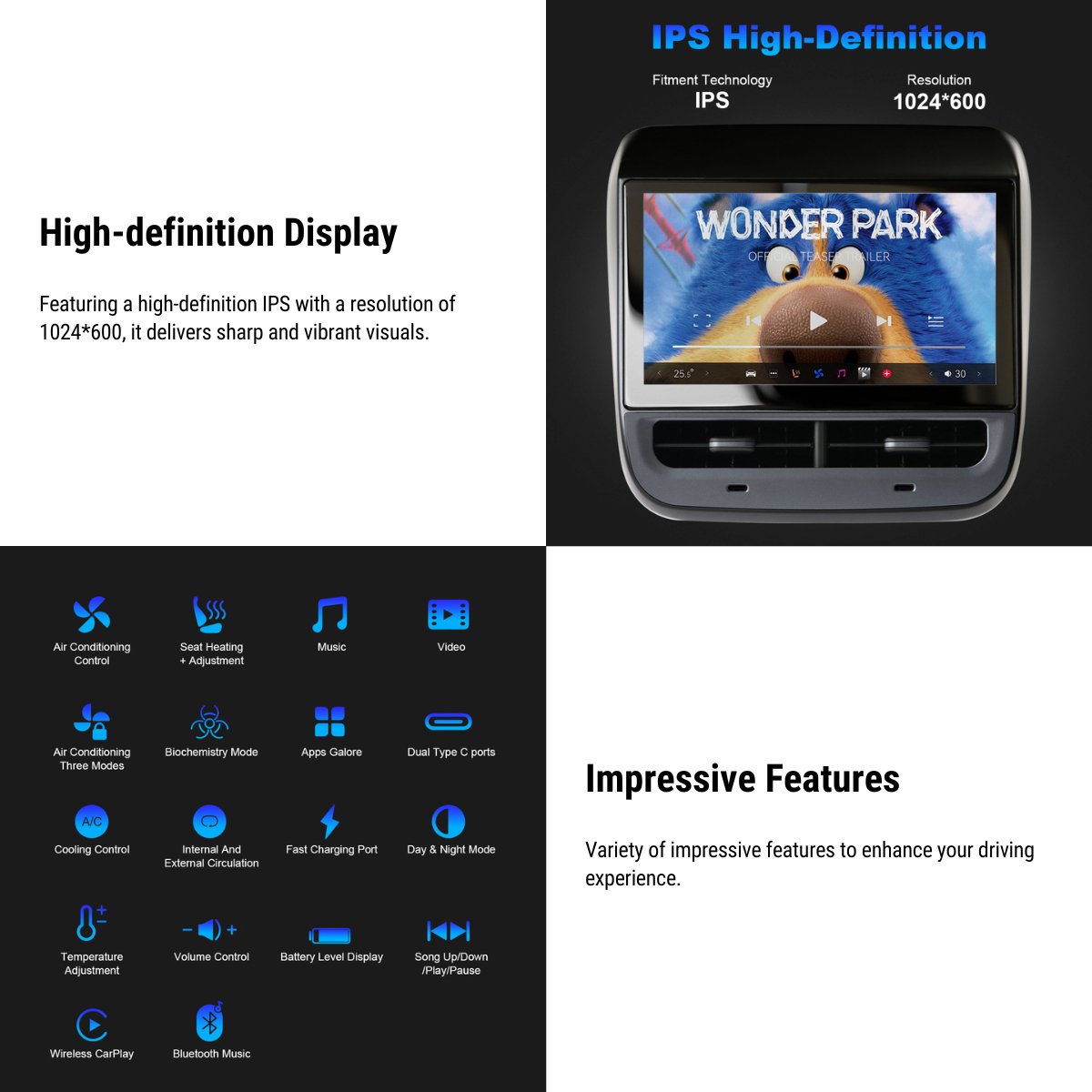 - Wireless CarPlay, easy connect your phone.