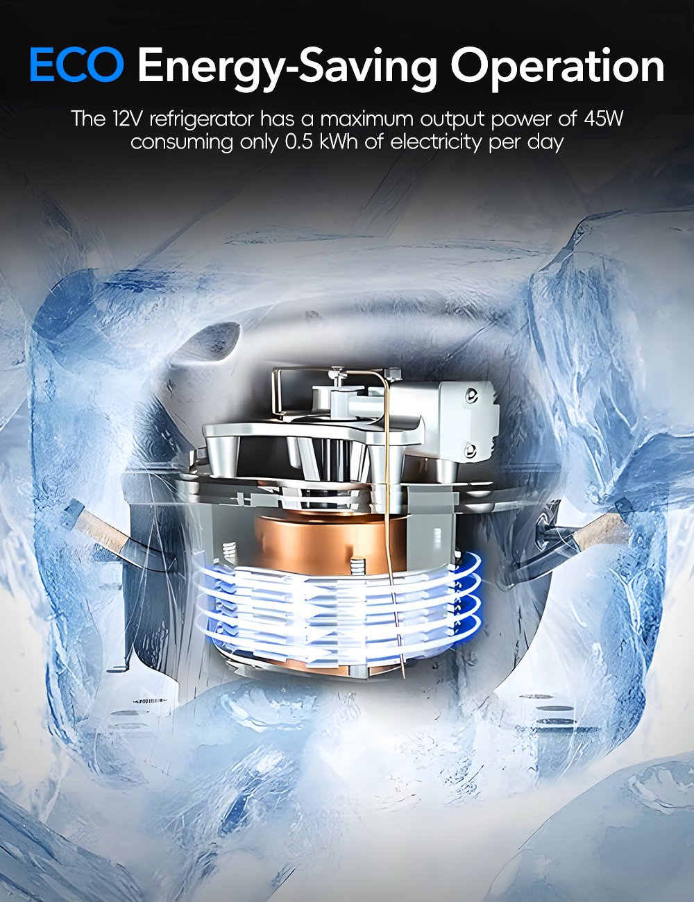 - 【Energy-Saving Technology】: Equipped with an efficient DC inverter compressor, this refrigerator consumes less than 0.5 kWh even when running continuously for 24 hours, having minimal impact on your vehicle’s battery life. Enjoy the convenience of frozen food without worrying about power consumption.